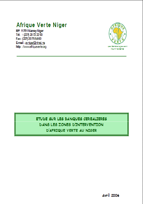 Etude sur les banques cerealières dans les zones d'intervention d'Afrique Verte au Niger