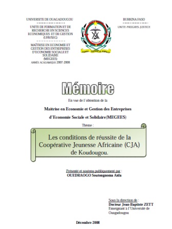 Les conditions de réussite de la Coopérative Jeunesse Africaine (CJA) de Koudougou.