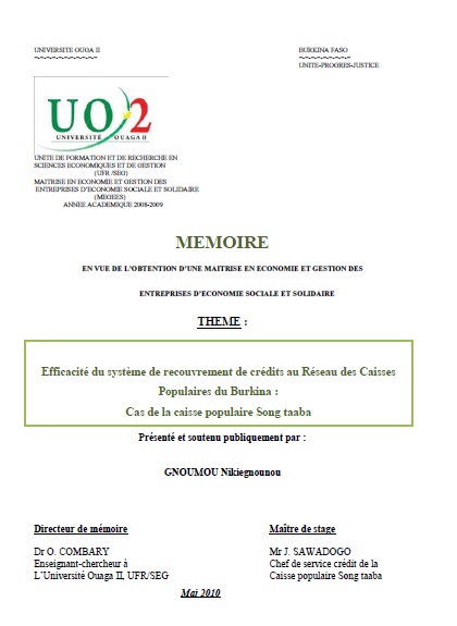 Efficacité du système de recouvrement de crédits au Réseau des Caisses Populaires du Burkina : Cas de la caisse populaire Song taaba